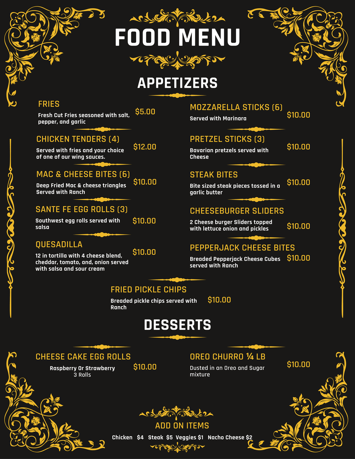 Food & Bottle Menus
